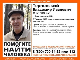 Внимание! По поиску Терновского В.И. сегодня планируется активный поиск и штаб. Территориально: г. Электросталь.